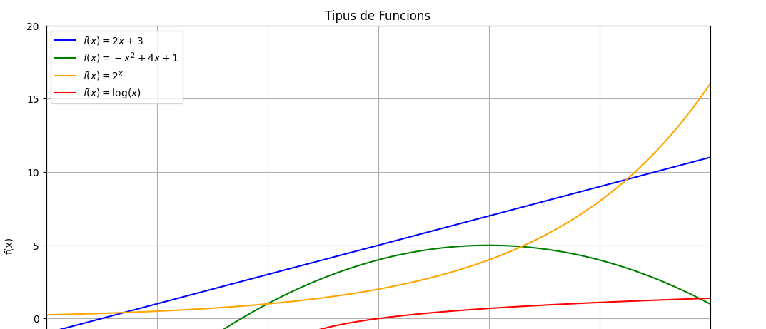 1 GEOGEBRA - 1.1 Cursos - 1.1.1 Principiant Exercici anàlisi (curs principiant Geogebra) Lliçó 4.2: Tipus de Funcions.
